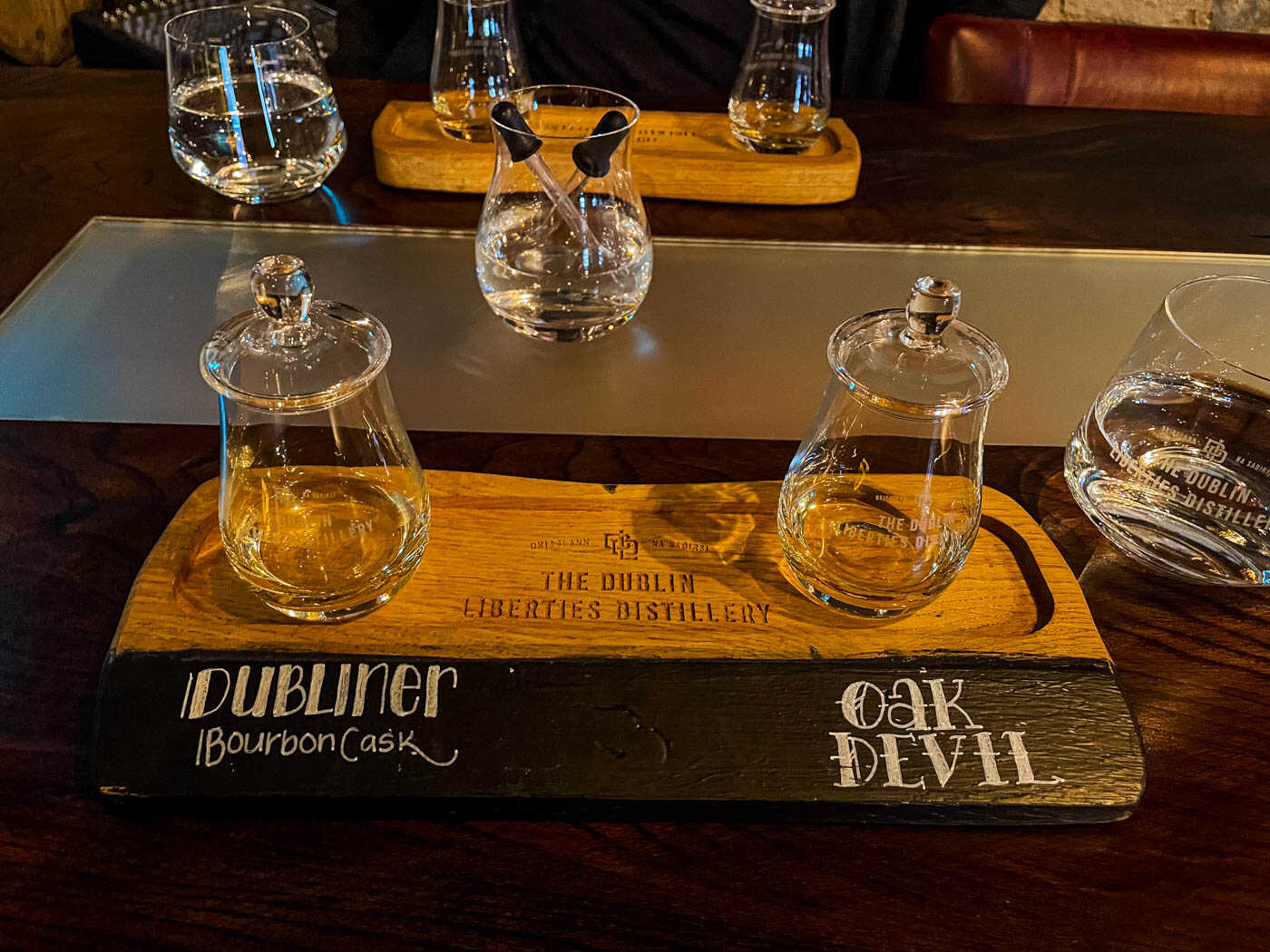 Die Tour durch die Dublin Liberties Distillery dauert etwa 45 Minuten. Am Ende der Führung gehört natürlich auch eine kleine Whiskey-Verkostung dazu, bei der man zwei verschiedene Abfüllungen probieren kann.